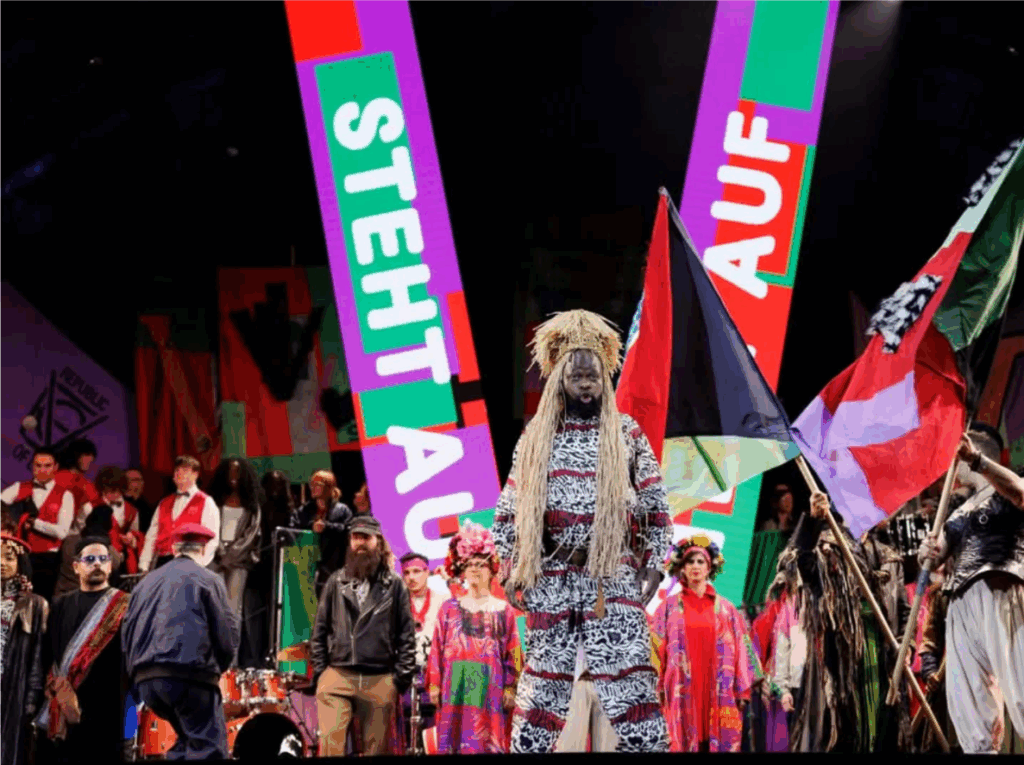 Le 16 mai 2025, Serge Kakudji a marqué de son empreinte l’ouverture des Wiener Festwochen à Vienne, devant 48 000 spectateurs rassemblés sur la Rathausplatz.
